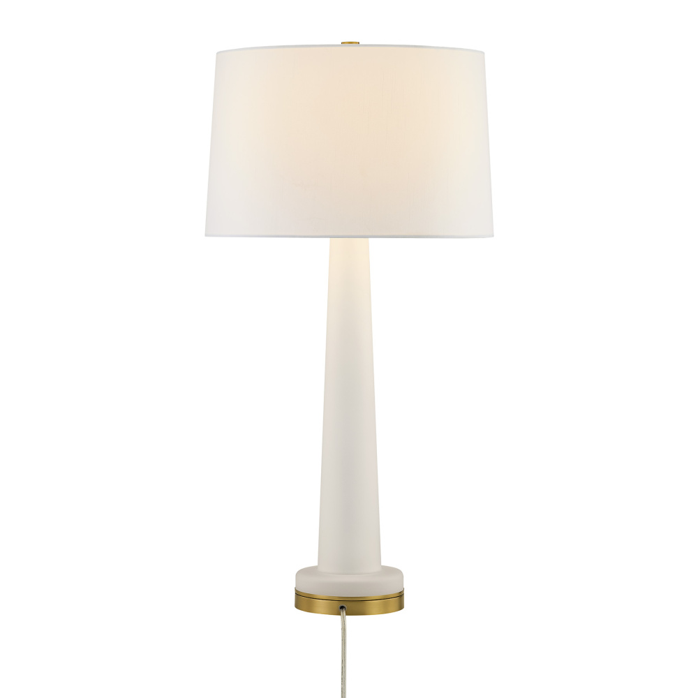 The Savoy House Trenton 1-light table lamp was designed by Dann Foley, an award-winning interior designer known for elevated, timeless taste. Its frosted glass body, white fabric shade and Warm Brass finish come together to create a classic, graceful silhouette that suits a wide range of interiors. Trenton is 30.75" in height and 16" in width. It uses one standard size bulb of up to 100 watts. Bulb not included.
