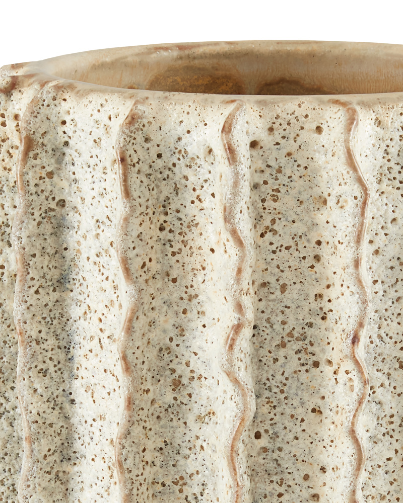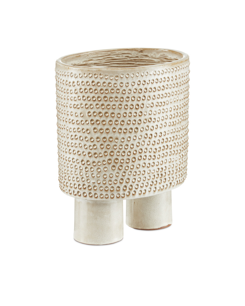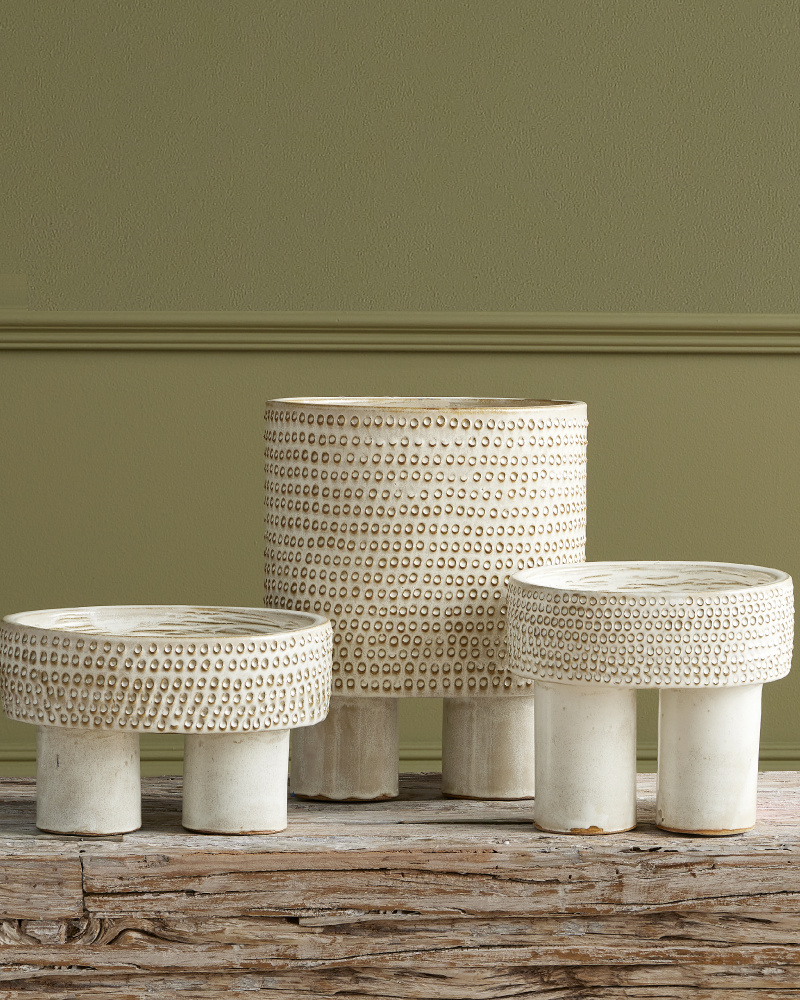 The Tula Large Ivory Bowl is a multi-dimensional work of art. Hand-thrown from ceramic, the pattern on the surface of the decorative accessory is achieved when an artisan punches it with a tool to create one circle at a time. The raised shapes that are created and the striations on the inside resist the ivory reactive glaze to let the original color of the material show through.