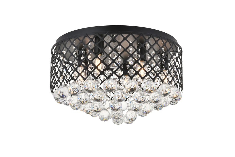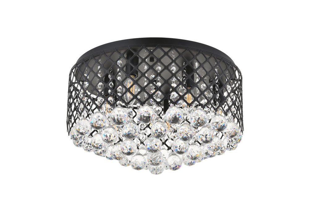 Enjoy the shimmering beauty of the Tully flush mount in a Mattee black finish. The elegant lattice metal curtain allows for the hanging crystals to play and dance around the illuminating light, with larger crystals at the base peeking out to say hello. Lights on or off, this flush mount will surely make quite a statement in your home!