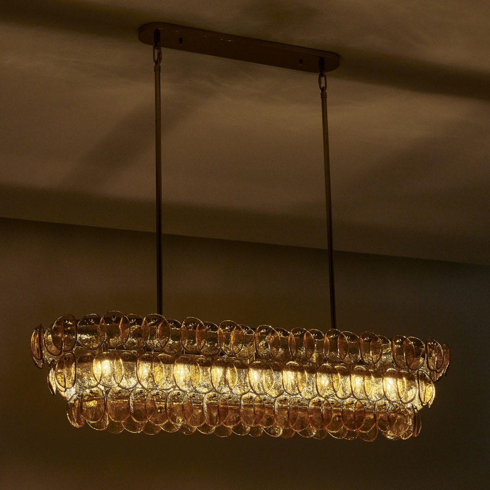 Illuminate your space with our fish scale-inspired Uroko collection. Glass discs are expertly crafted to provide a subtle yet striking lighting effect, creating a warm and inviting ambiance wherever it is placed. Our Polished Winter Brass (PWB) or Black Nickel (BN) finishes coordinate with the glass to create a shimmering focal point to any room.