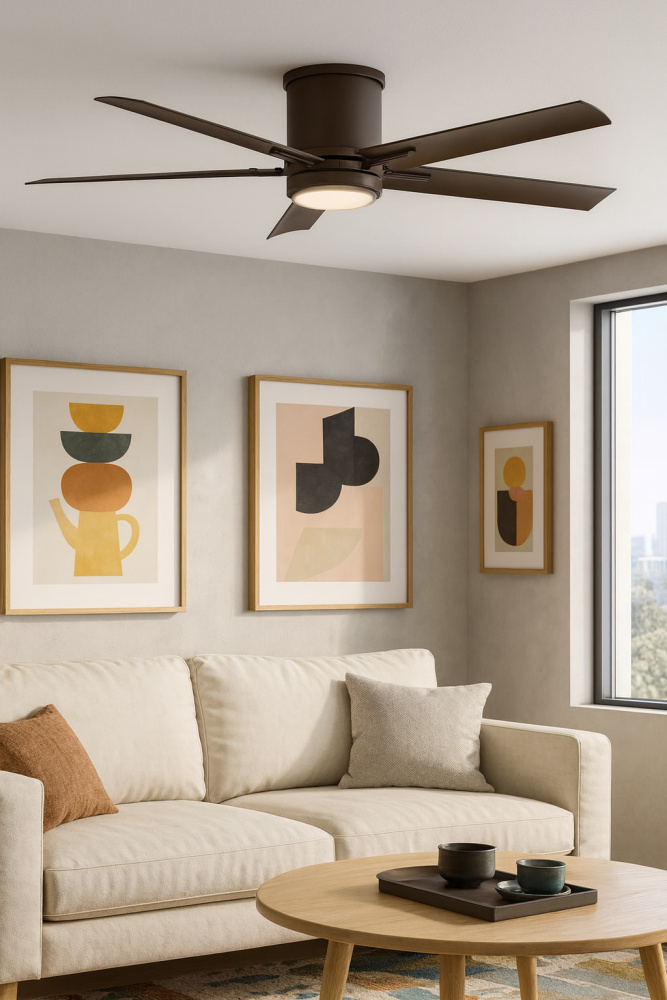 Vail Flush offers a transitional design with gently curved blades and an array of finish options, while its integrated LED lighting and DC motor technology deliver excellent energy efficiency. Vail Flush is so versatile; it can be used for both indoor and outdoor spaces. Blades are included with every fan.