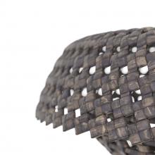WORKING IN GRAY-WASHED RAFFIA, ARTISANS EXPERTLY CRAFTED THE VALDEZ PENDANT, WHICH FEATURES AN INTERLOCKING BASKET DESIGN. THE LOW-PROFILE ILLUMINATOR IS CREATED WITH TWO DIFFERENT PATTERNS—A CHECKERED WEAVE FOR THE BASE AND A DIAMOND WEAVE FORMING THE COVER. THE PENDANT IS FITTED WITH A SUSPENSION PIPE OF BRONZED IRON. FINISH WILL VARY.