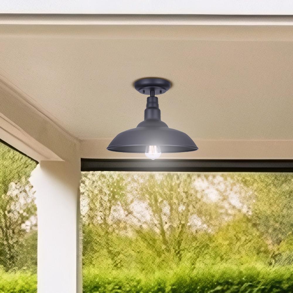 Vintage-Inspired Elegance: The flush mount light's classic black finish and wide shade design add a timeless rustic look to your outdoor spaces.
