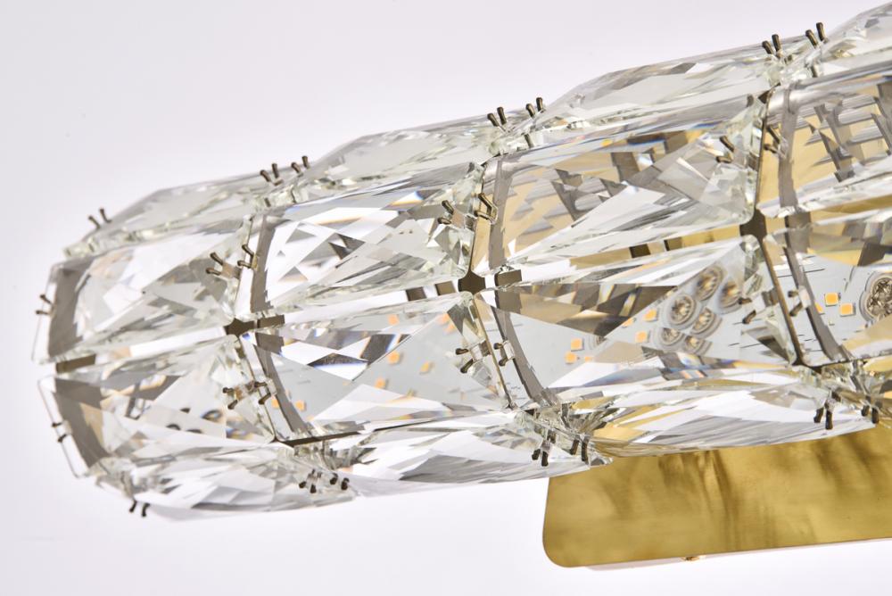 Valetta hanging fixtures dress up a living room, dining room, or bedroom without overwhelming the surrounding décor. This collection features an octagonal tube-shaped stainless-steel frame that’s covered almost entirely with shining rectangular clear crystals. A rectangular mounting plate is connected to the frame by slender cables that keep everything secure. A sleek metal finish completes this modern look with warm led lighting. Available in three sizes.