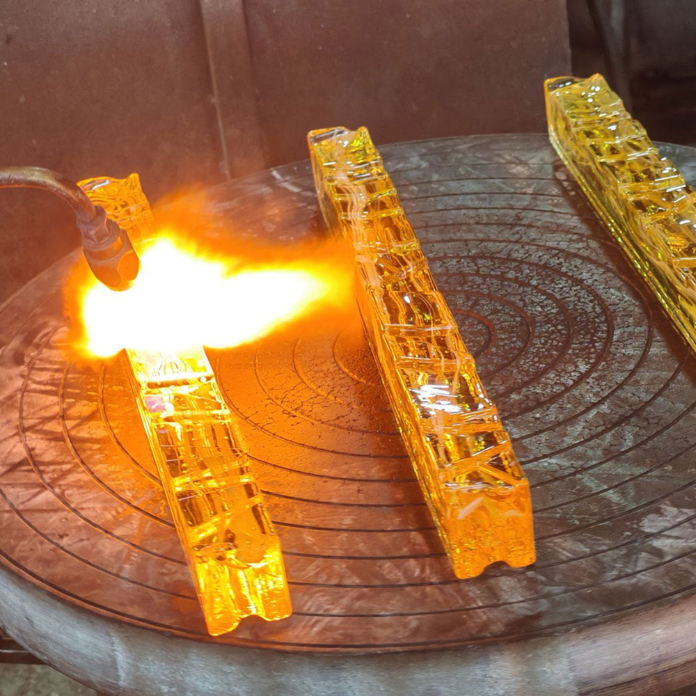 Striking Modern Design A 8-inch black mini pendant featuring handmade textured glass for a bold, contemporary statement in any space.