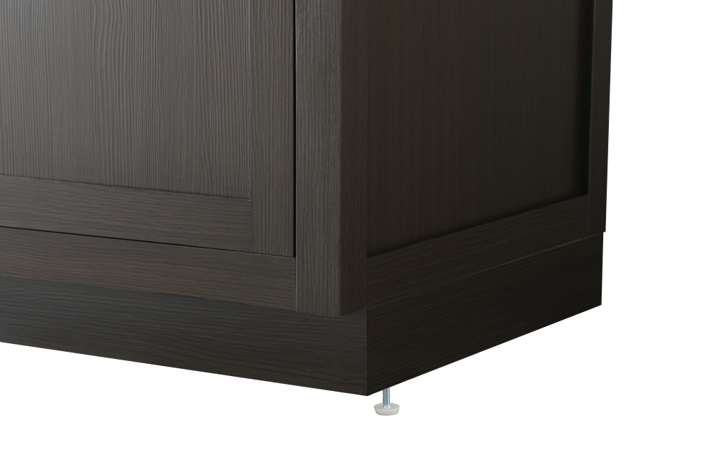 Toe kick design offers a streamlined look while providing easy cleaning access beneath the vanity.