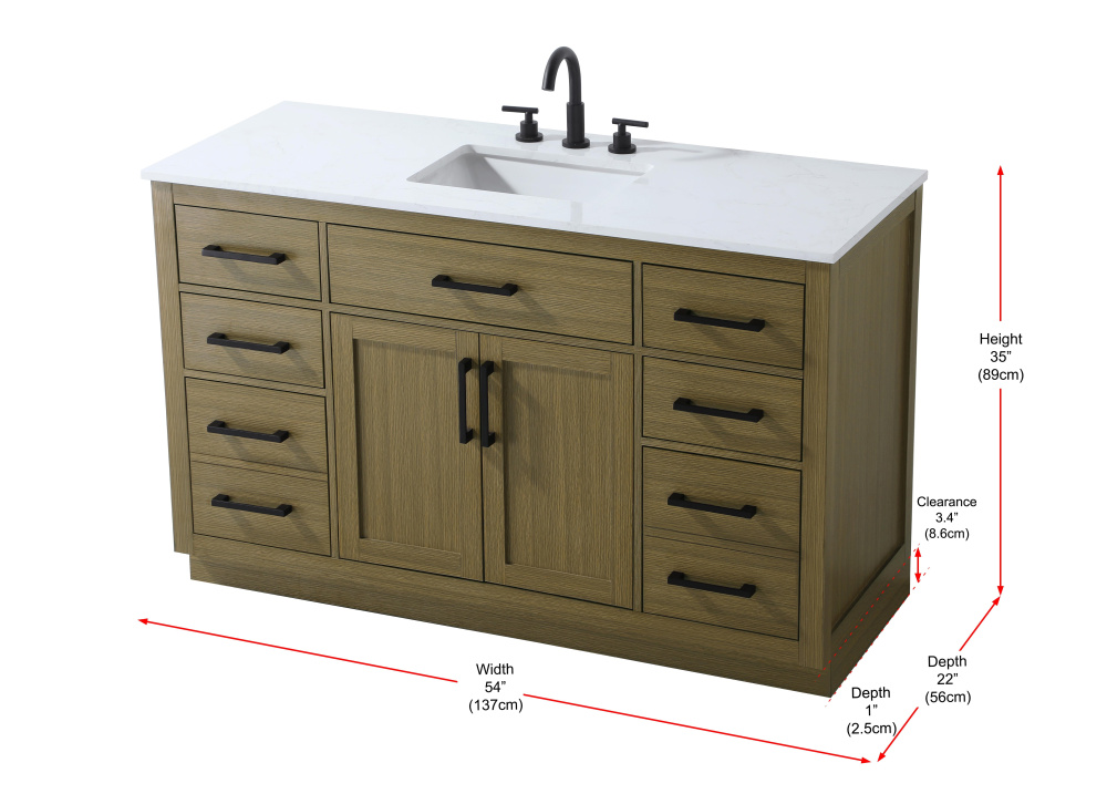 Vanity Cabinet 2Dr7Dw 54"W x 22"D x 35''H Chestnut Brown