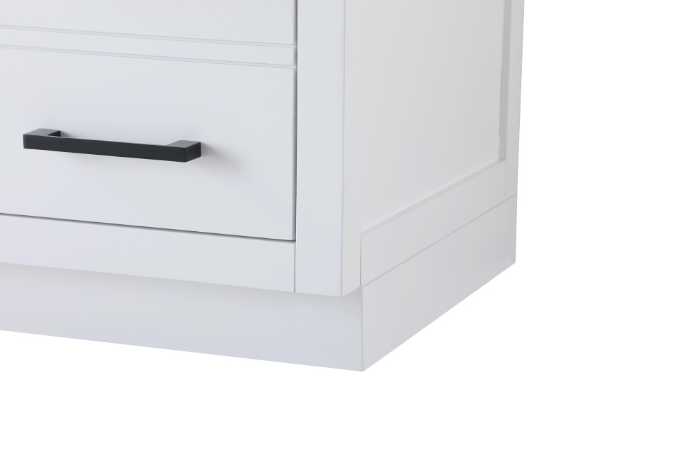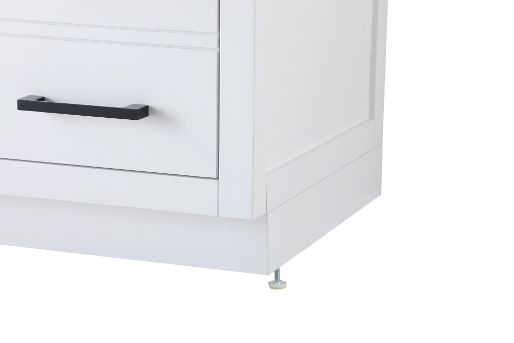 Spacious bottom deep drawers provide extra room for storing larger items like towels or cleaning supplies.