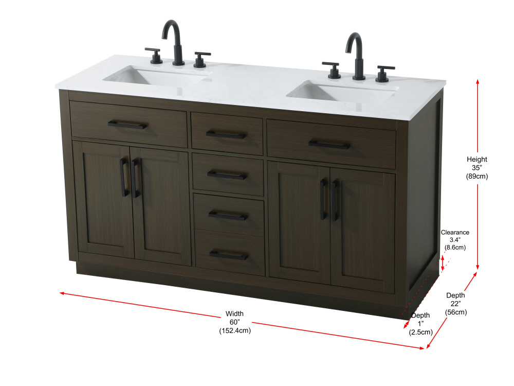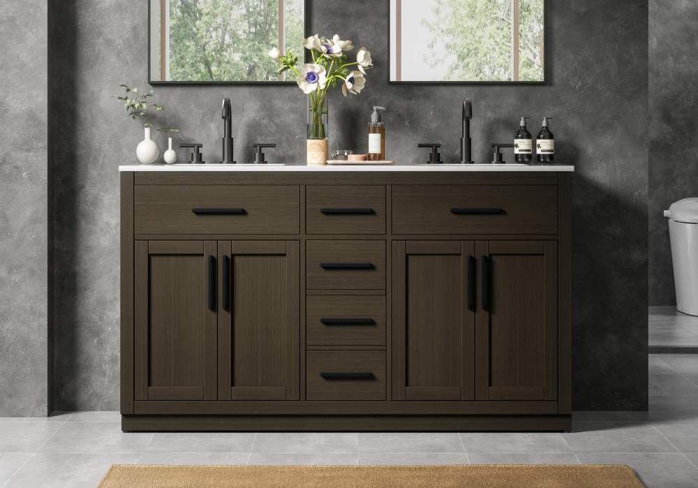 Vanity Cabinet 4Dr5Dw 60"W x 22"D x 35''H Mocha Brown