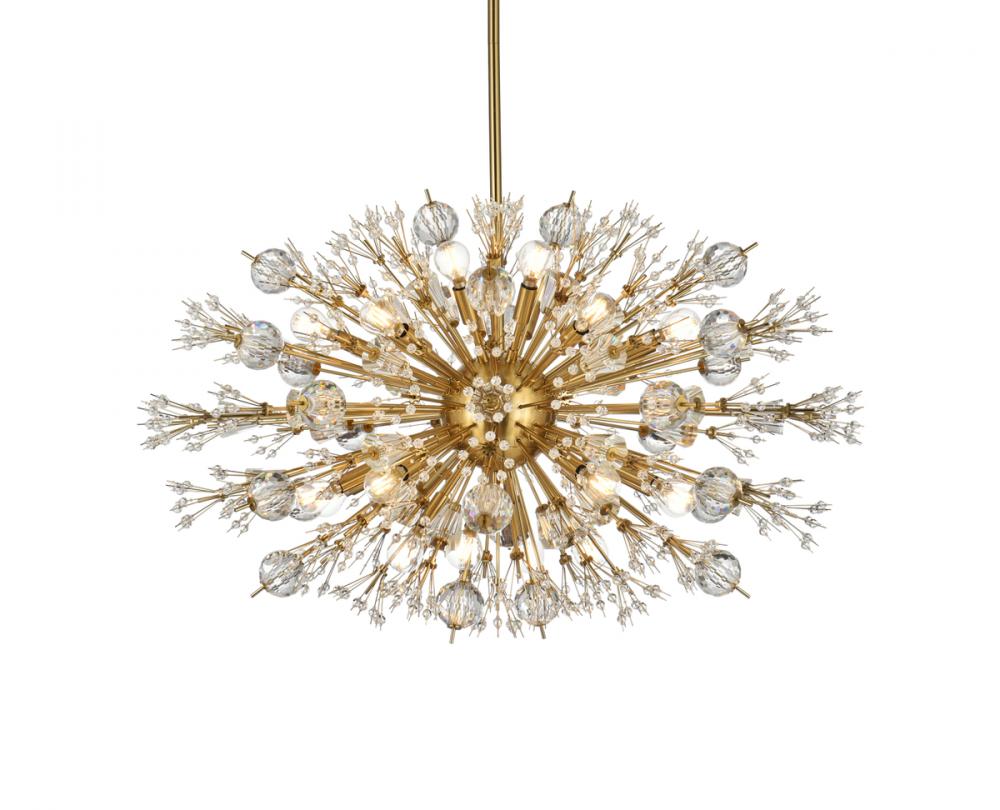 Vera 36 inch crystal starburst oval pendant in gold