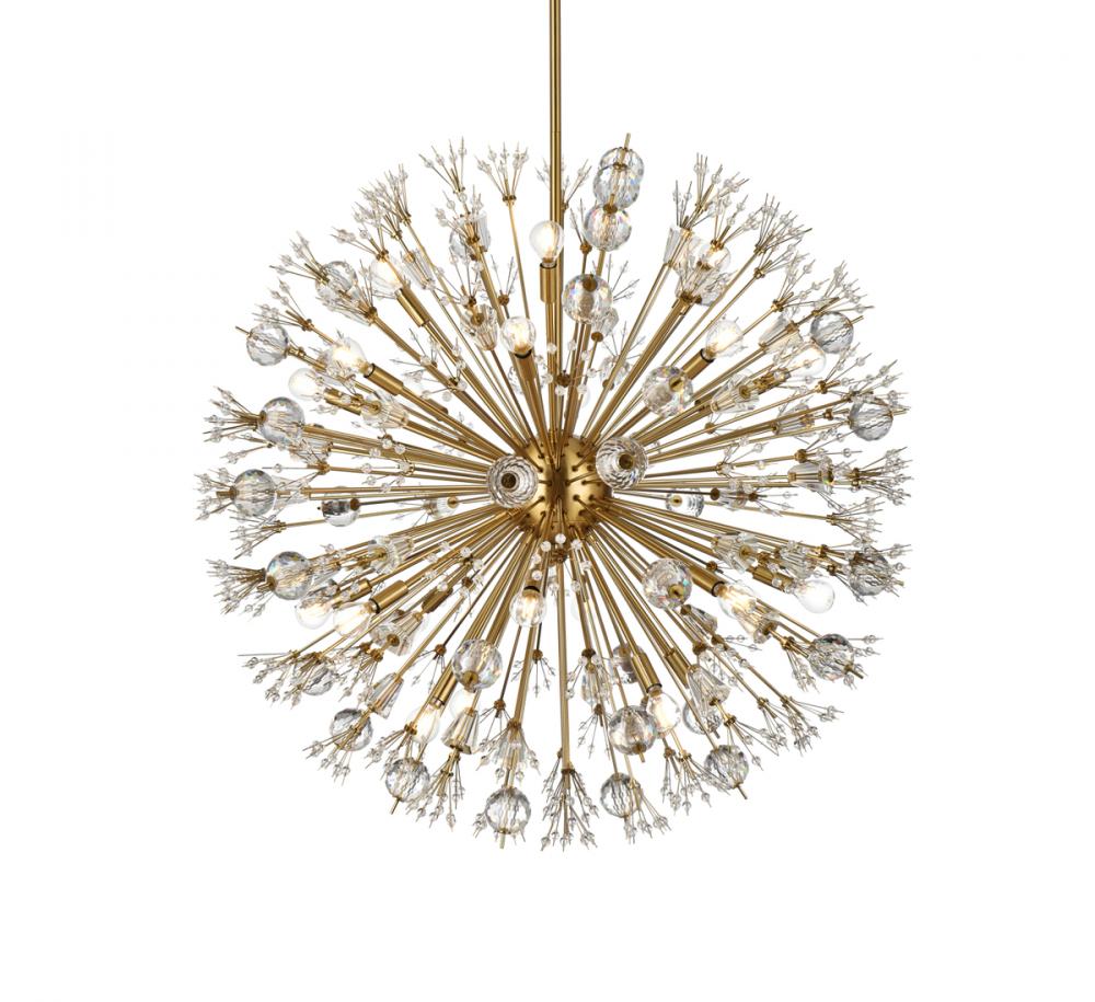 Vera 38 inch crystal starburst round pendant in gold
