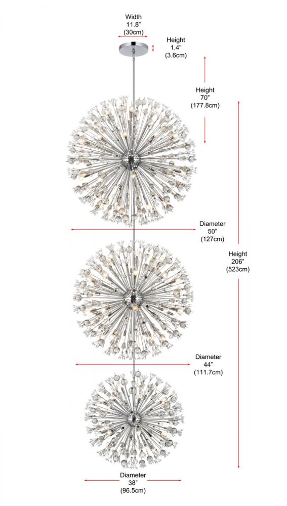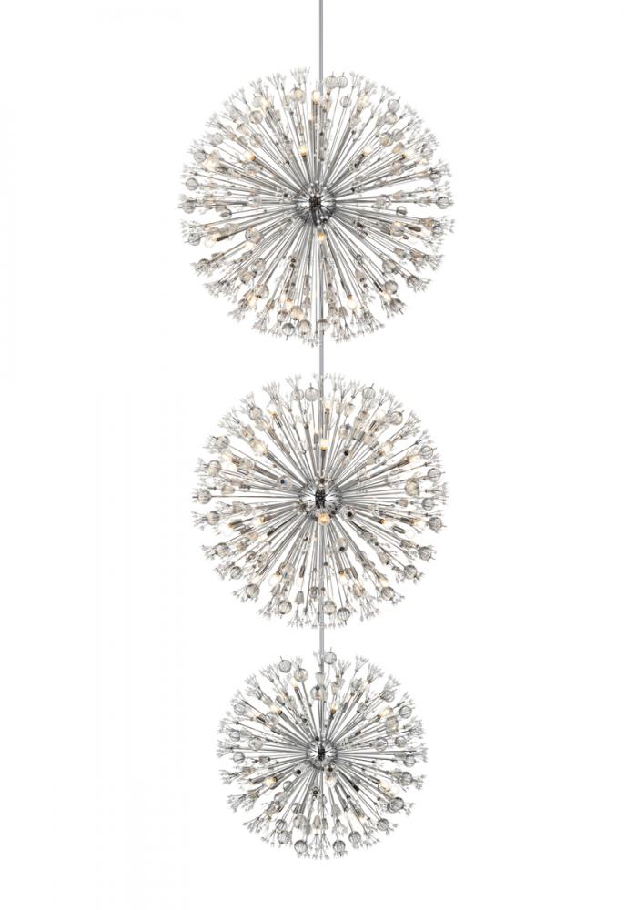 Vera 50 inch three tiers crystal starburst chandelier in chrome