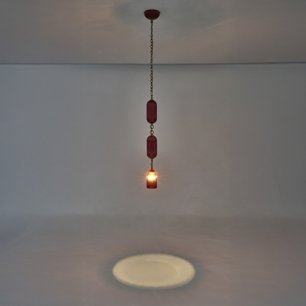 Infuse your interiors with dramatic elegance and retro charm with the stunning Verde collection, featuring a True Satin Brass (STB) finish with your choice of either fluted green or magenta glass. Each richly textured glass dish cradles a glowing orb bulb, casting a warm, inviting light and creating a play of color and shadow. The overall composition and decorative chain highlight an exquisite balance between vintage glamour and modern sophistication, perfect for dining rooms, grand entryways, or boutique hospitality settings. Whether illuminated or admired unlit, this collection captivates with its bold color and refined craftsmanship.