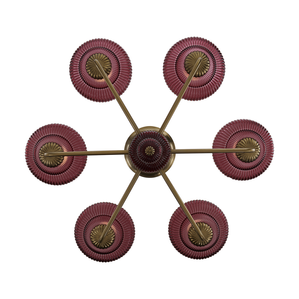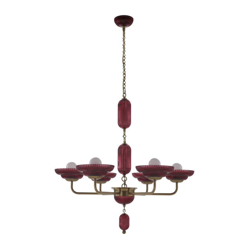 Infuse your interiors with dramatic elegance and retro charm with the stunning Verde collection, featuring a True Satin Brass (STB) finish with your choice of either fluted green or magenta glass. Each richly textured glass dish cradles a glowing orb bulb, casting a warm, inviting light and creating a play of color and shadow. The overall composition and decorative chain highlight an exquisite balance between vintage glamour and modern sophistication, perfect for dining rooms, grand entryways, or boutique hospitality settings. Whether illuminated or admired unlit, this collection captivates with its bold color and refined craftsmanship.