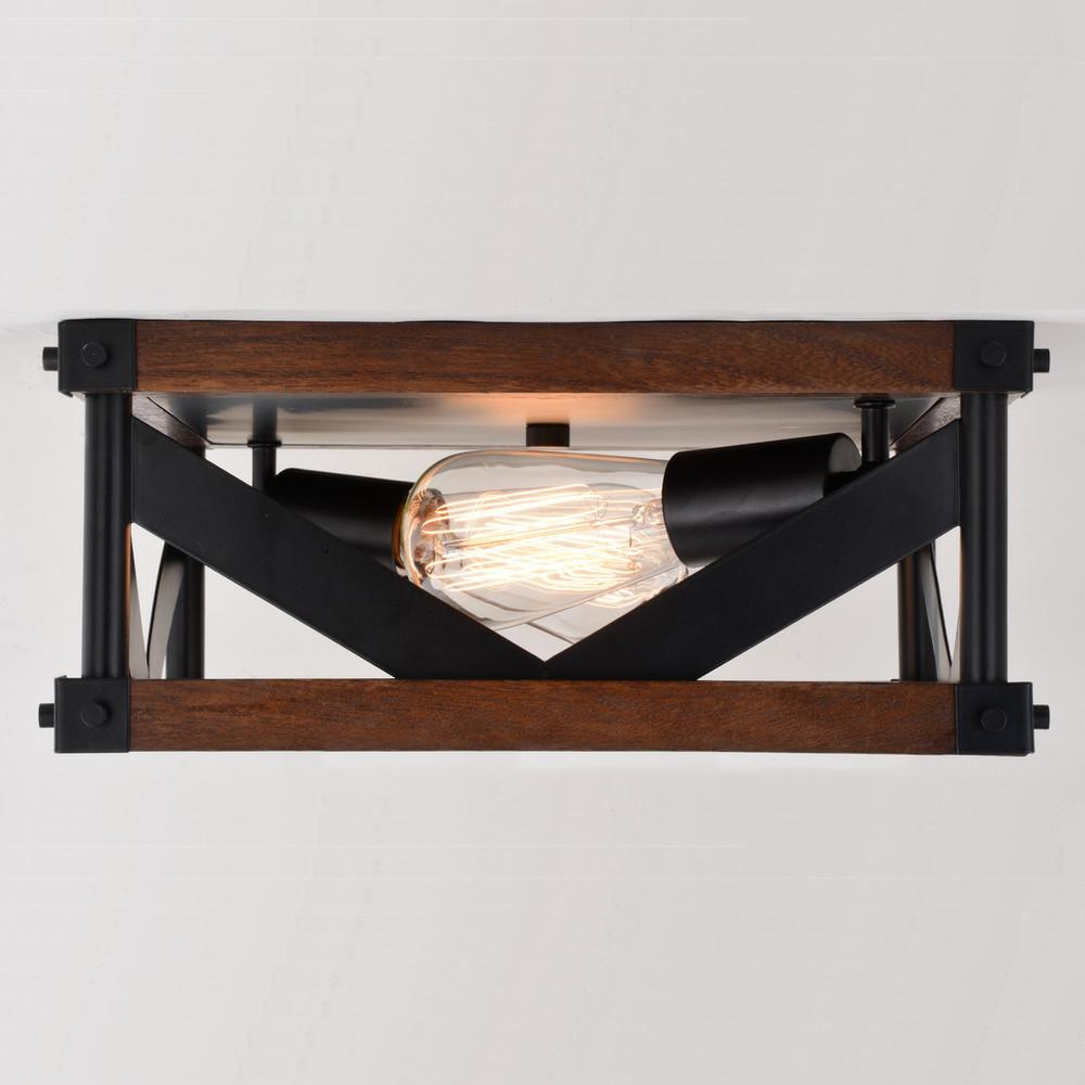 Vaxcel International C0260 - Wade 13-in. 2 Light Flush Mount Matte Black and Sycamore Wood