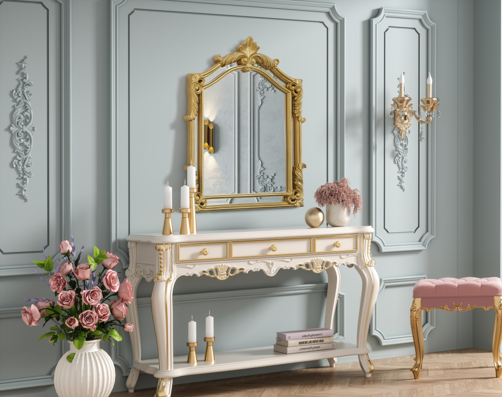 Whether placed in a living room, grand entryway, or above a vintage vanity, this mirror instantly enhances its surroundings with its regal presence.