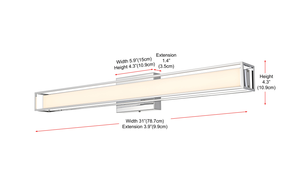 Transform your space with our sophisticated Linear LED Wall Sconce, where modern design meets exceptional functionality. This architectural masterpiece features a striking geometric frame that makes a bold statement while providing efficient, customizable illumination. The innovative tri-color temperature switch allows you to perfectly tune the ambiance from a warm, inviting glow to crisp, task-oriented lighting. With its versatile mounting options and premium iron and acrylic construction, this fixture seamlessly integrates into any contemporary setting. Whether illuminating your bathroom vanity or adding architectural interest to your hallway, the clean lines and professional-grade LED performance deliver both style and substance. The energy-efficient LED provides an impressive lumens through a carefully engineered acrylic diffuser, ensuring uniform, glare-free illumination. Available in multiple sizes and finishes, this hardwired fixture represents the perfect blend of form and function for the modern home or commercial space.