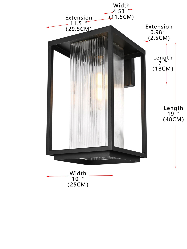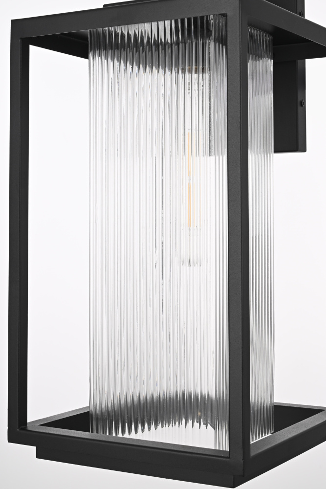 Enhance the beauty of your home's exterior with this refined outdoor wall sconce, crafted from durable iron and glass. The fluted glass design offers an eye-catching texture that diffuses light for a warm, ambient glow. Built with a sturdy iron frame, this sconce blends classic craftsmanship with modern appeal, making it the perfect addition to your porch, patio, or entryway. The clean-lined silhouette and versatile black finish make it easy to complement any style, from contemporary to traditional.