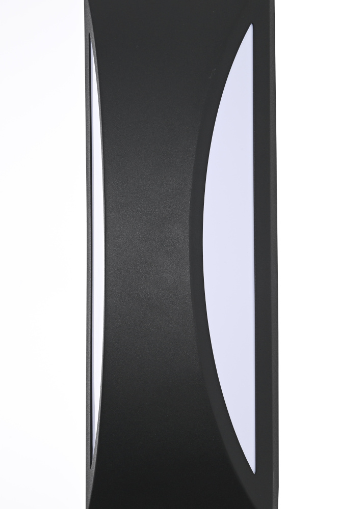 Sleek, sculptural, and effortlessly modern, this LED outdoor wall light is designed to make a statement. Crafted from durable iron and aluminum with a smooth black finish, it features a distinctive curved form with dual light openings for a captivating glow. The integrated 8W LED emits a warm 3000K light at 190 lumens with an 80 CRI, ensuring both energy efficiency and optimal brightness. Its white acrylic diffuser softens the light, creating a beautifully balanced illumination effect. Designed for flexibility, this fixture can be mounted either vertically or horizontally, allowing you to customize its placement to fit your exterior vision. Wet rated for outdoor durability, it's perfect for patios, entryways, and exterior walls, bringing a refined architectural touch to modern spaces.