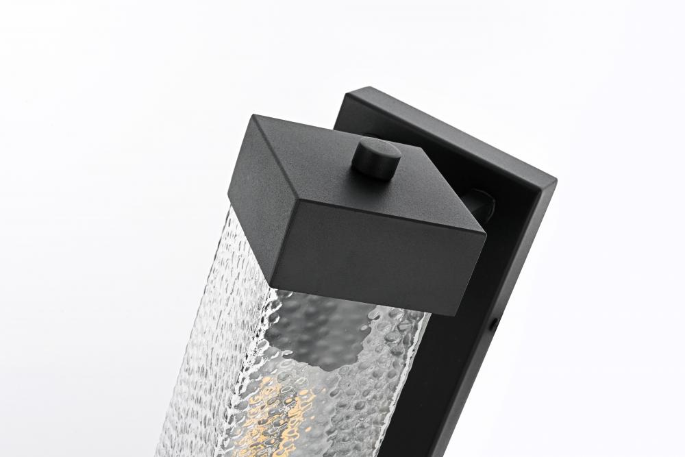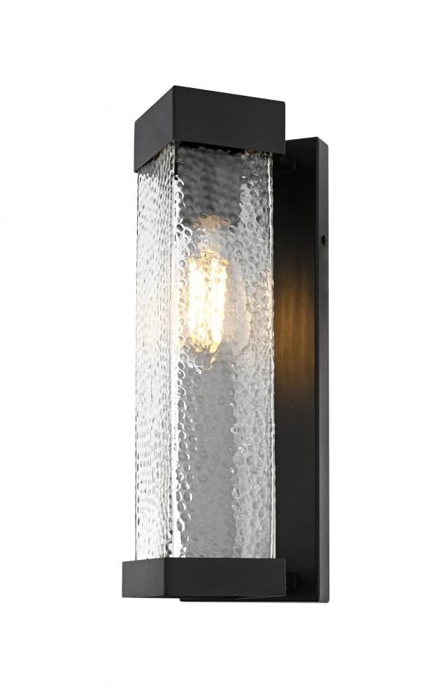 Bring a refined touch to your exterior spaces with this stunning outdoor wall sconce. The design features a black iron frame with a tall rectangular silhouette, providing a timeless and bold statement. The textured, rippled glass panel emits a diffused and inviting light, creating a beautiful ambient glow. The E26 socket offers compatibility with a range of light bulb types, including energy-efficient LED options, while the rugged iron construction ensures durability against the elements. The sconce’s structured aesthetic, topped and bottomed with iron frames, embodies both strength and sophistication, making it ideal for doorways, patios, or walkways.