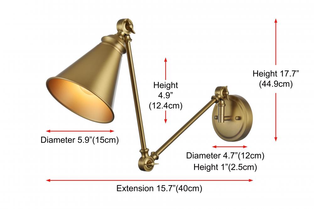 Bring versatile, modern functionality to your space with this adjustable wall sconce that combines both style and practicality. Available in four stunning finishes—Satin Gold, Black, Brass, and Chrome—this wall sconce is a great fit for any decor, adding a sophisticated and functional touch. The adjustable cone-shaped shade is designed to allow you to direct light upwards or downwards, giving you total control over your lighting needs. The double-jointed arm and 240-degree rotation ensure you can position the light exactly where you need it, making this sconce perfect for use as a reading light, task lighting, or even as accent lighting in a living room or hallway. The fixture features an E26 socket (bulb not included), allowing you to choose the perfect bulb to match your preferred ambiance. Whether you want a single sconce to add focused light to a specific spot or multiple lights to create a balanced look across a larger room, this wall sconce delivers both style and functionality.