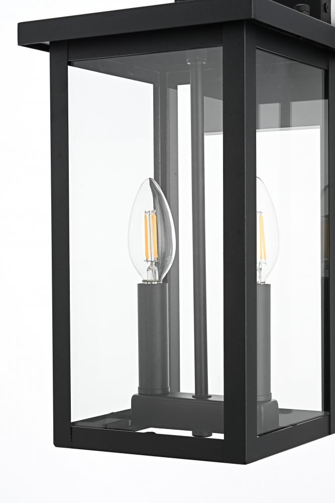 This modern outdoor wall sconce combines simplicity and functionality to enhance your home's exterior. Crafted with durable iron and crystal-clear glass panels, it brings a sleek and modern touch that will withstand the elements while delivering outstanding style. Its linear rectangular frame, paired with a timeless black finish, makes it the perfect addition for enhancing the architectural appeal of porches, entryways, or patios. The transparent glass panes give an uninterrupted view of the warm bulb, creating a welcoming ambiance for your outdoor spaces.