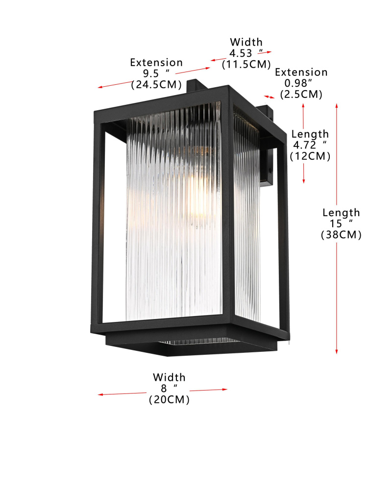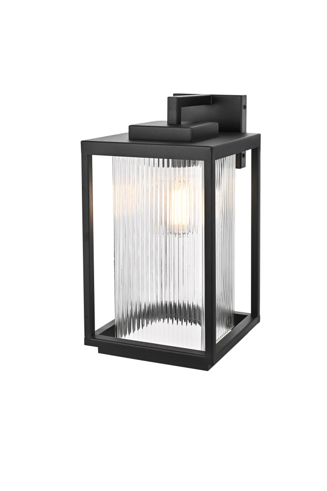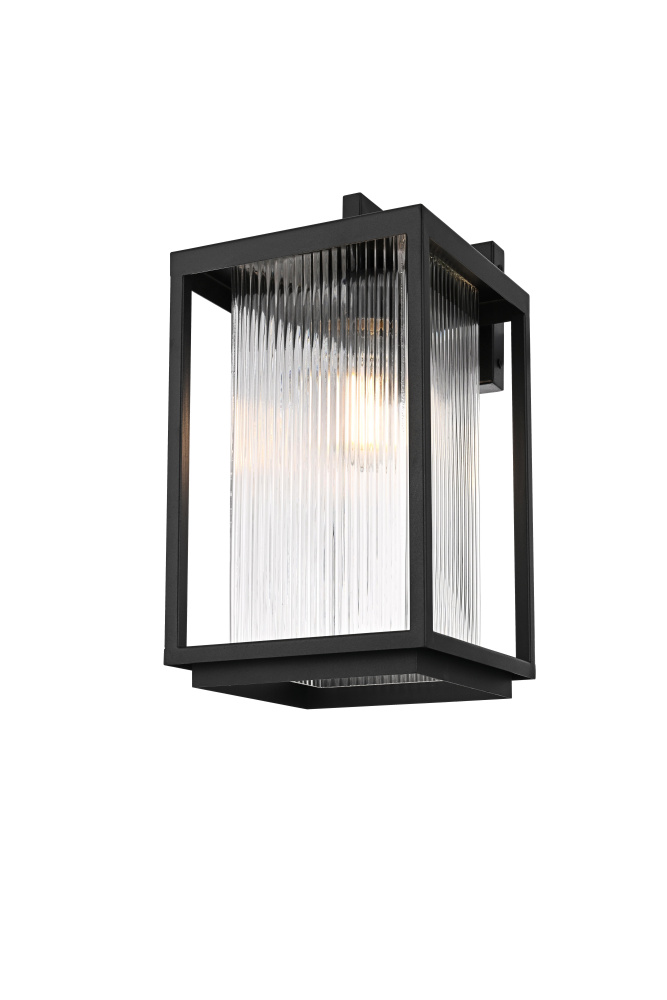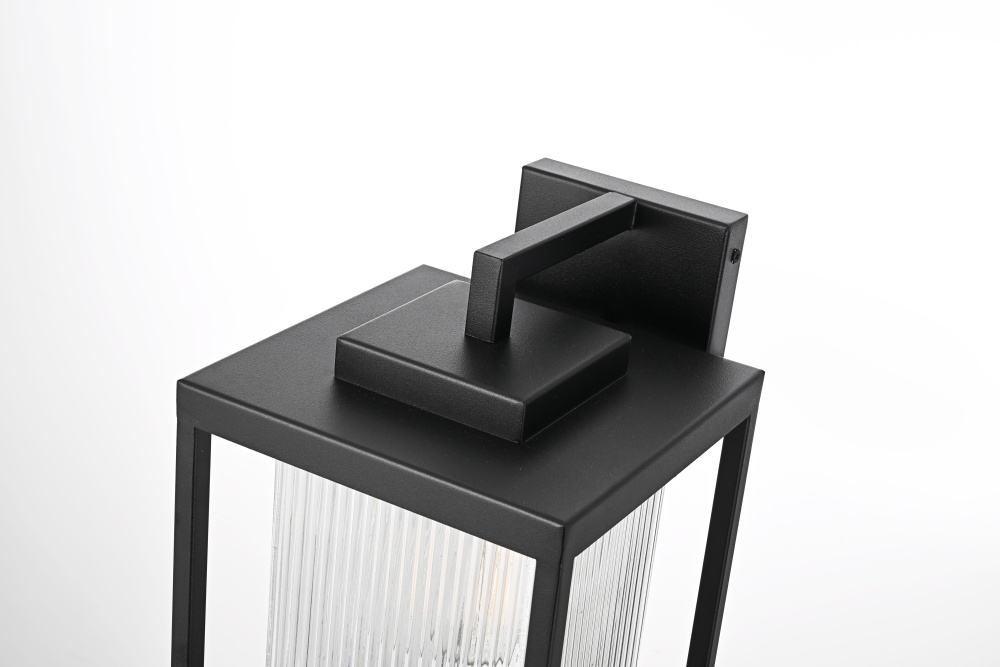 Enhance the beauty of your home's exterior with this refined outdoor wall sconce, crafted from durable iron and glass. The fluted glass design offers an eye-catching texture that diffuses light for a warm, ambient glow. Built with a sturdy iron frame, this sconce blends classic craftsmanship with modern appeal, making it the perfect addition to your porch, patio, or entryway. The clean-lined silhouette and versatile black finish make it easy to complement any style, from contemporary to traditional.