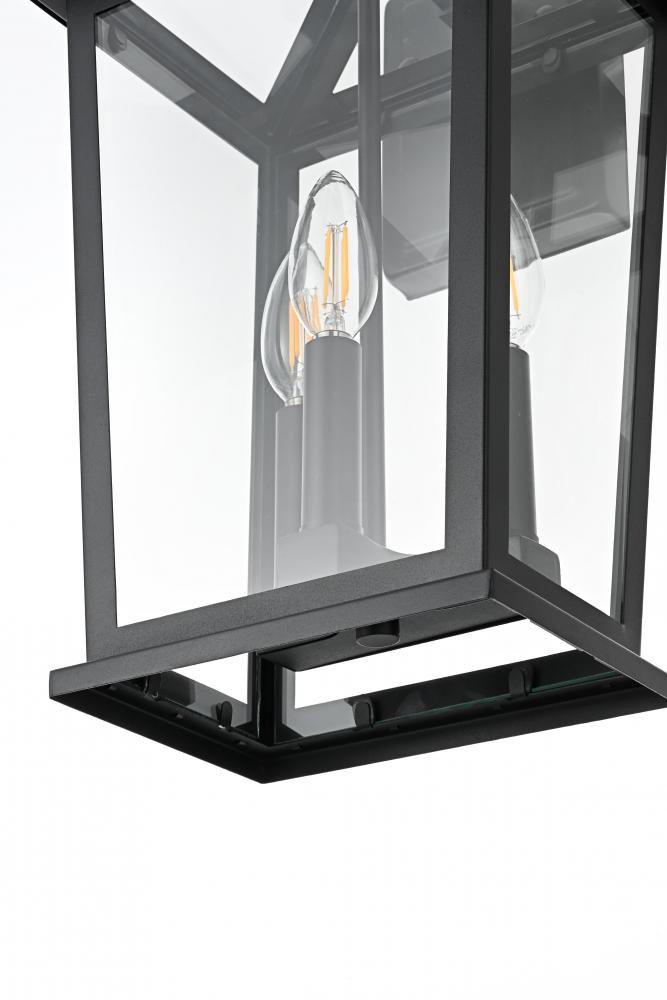 Enhance your outdoor space with this stylish wall sconce that features a striking matte black frame paired with clear glass panels, perfectly showcasing its modern charm. The latern box shape is adorned with a distinctive triangular loop on top, adding a unique architectural touch that seamlessly combines functionality with a bold, sleek aesthetic. The open bottom design allows for easy bulb changes and casts a beautiful downward light, adding a welcoming glow to your entrance or patio area. Crafted from durable iron with a clean, modern style, this wall sconce is perfect for those who appreciate a blend of simplicity and contemporary design. The clear glass ensures maximum light output, enhancing visibility while emphasizing the beautiful shape of the bulb inside. The E12 socket offers versatility for different bulb styles, allowing you to easily customize the ambiance of your outdoor area.