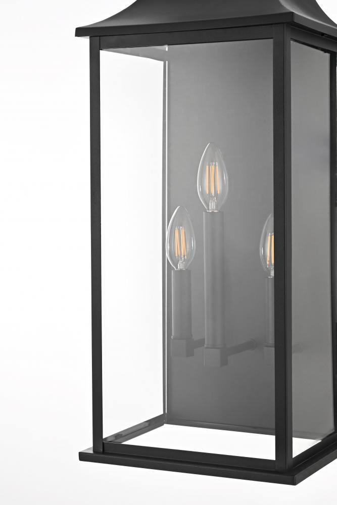 Clear glass panels provide unobstructed light, creating a bright and inviting glow.