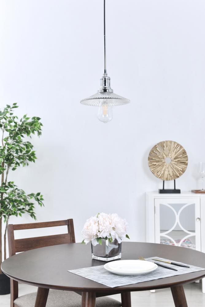 The Waltz collection pendant lamp in a chrome finish will have you dancing through your own halls with its beautiful adjustable arm that supports a lampshade that is vaguely reminiscent of a lithe ballerina's tulle tutu. Whether it's you dancing, or the light dancing, this pendant lamp will surely illuminate every corner of your home and bring about joy and laughter.