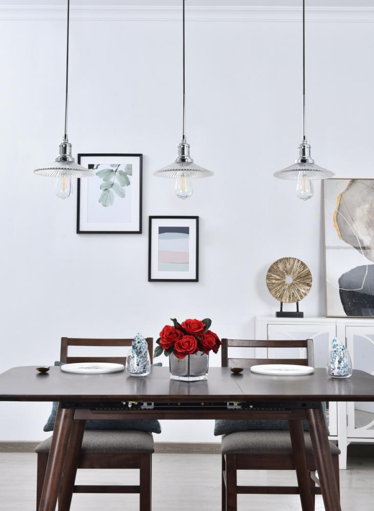 The Waltz collection pendant lamp in a chrome finish will have you dancing through your own halls with its beautiful adjustable arms that supports lampshades vaguely reminiscent of a lithe ballerina's tulle tutu. The 3 lights hanging in a row are as if a group twirling around together! Whether it's you dancing, or the light dancing, this pendant lamp will surely illuminate every corner of your home and bring about joy and laughter.