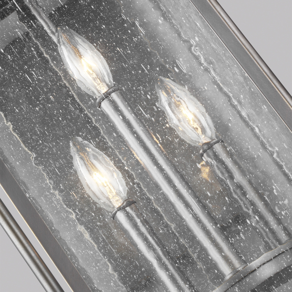 The Sean Lavin Wellsworth three light outdoor wall fixture in antique bronze creates a warm and inviting welcome presentation for your home's exterior. A subtle interplay of traditional design elements and nautical influences creates the charming visual approach to the Wellsworth outdoor collection by Visual Comfort Studio. Available in three finishes and two different aesthetics. Antique Bronze finish paired with Clear Seeded glass creates a more traditional look to these outdoor light fixtures; while Burnished Brass and Painted Brushed Steel finish coupled with Clear glass reflects a more contemporary approach. The Wellsworth collection includes a 3-light outdoor pendant, a 3-light outdoor post lantern, and 3-light small and medium outdoor lanterns, as well as a 4-light large outdoor lantern. Cast aluminum construction ensures durability. Wet Rated.