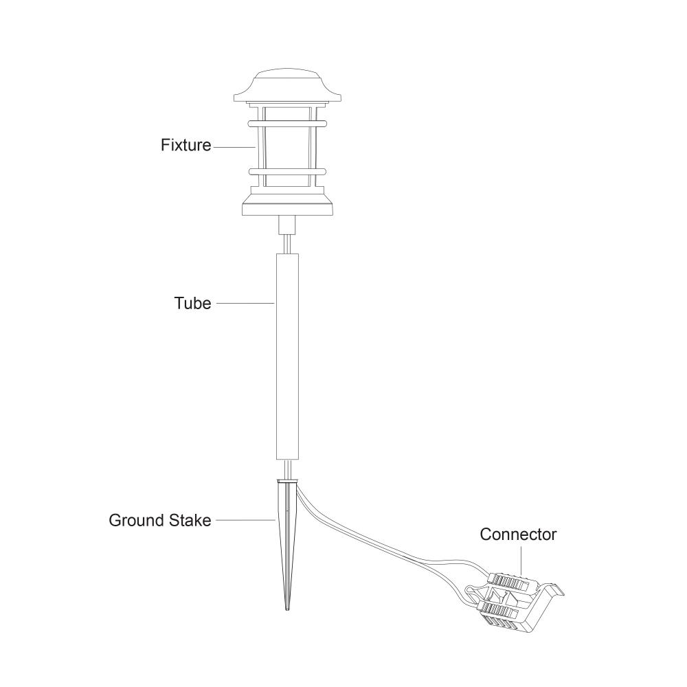 Low voltage transformer required (sold separately). Ground stake and connector cable included.