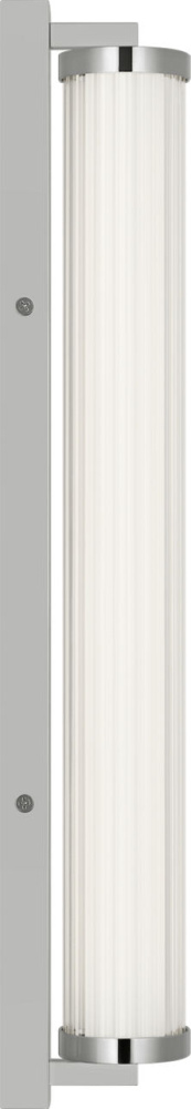 The Weston 22" Vanity combines linear symmetry with material depth, featuring a ribbed glass lens framed by a full-length metal backplate. Dedicated LED technology delivers efficient, ambient light while the textured diffuser enhances clarity and softens glare. suited for horizontal mounting in bathrooms and powder rooms where diffused illumination and visual structure are required.