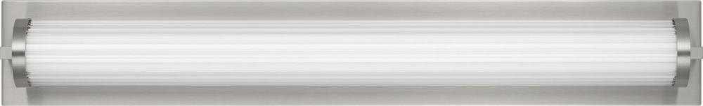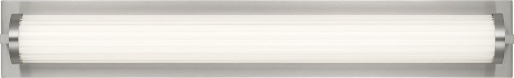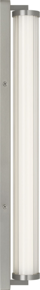 The Weston 28" Vanity combines linear symmetry with material depth, featuring a ribbed glass lens framed by a full-length metal backplate. Dedicated LED technology delivers efficient, ambient light while the textured diffuser enhances clarity and softens glare. suited for horizontal mounting in bathrooms and powder rooms where diffused illumination and visual structure are required.