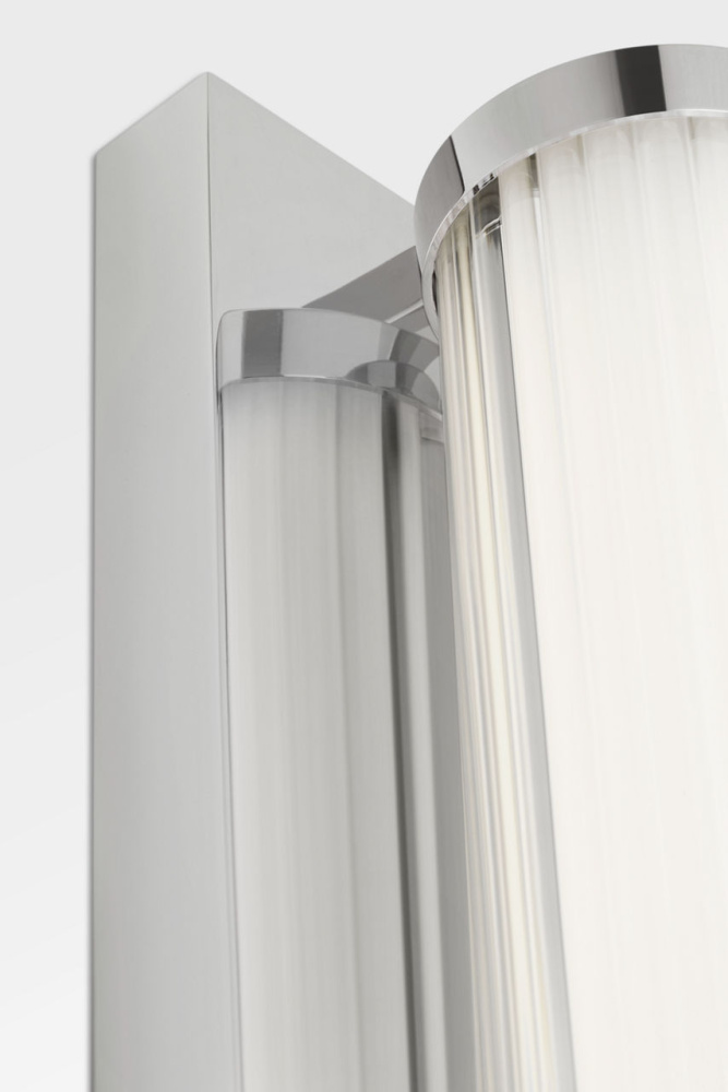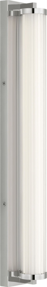 The Weston 28" Vanity combines linear symmetry with material depth, featuring a ribbed glass lens framed by a full-length metal backplate. Dedicated LED technology delivers efficient, ambient light while the textured diffuser enhances clarity and softens glare. suited for horizontal mounting in bathrooms and powder rooms where diffused illumination and visual structure are required.