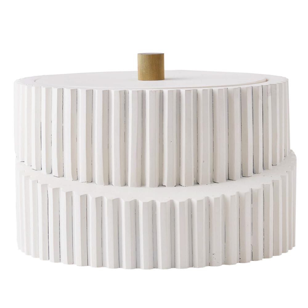 THE WHITTAKER’S GROOVED DESIGN, CREATED IN STACKED, OFFSET DISCS, OFFERS AN INDUSTRIAL NOD REMINISCENT OF MACHINE GEARS. THE CONTEMPORARY CACHE FEATURES A CONTRASTING, NOTCHED ROUND KNOB IN AN ANTIQUE BRASS FINISH. CARVED IN IVORY RESIN, THE ACCENT IS AS VERSATILE AS IT IS STYLE PACKED.