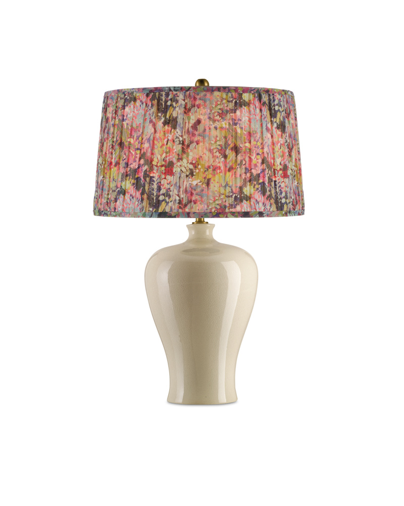Lush wildflowers in shades of magenta and yellow dance across this pleated lampshade from design partner Lacefield Designs.