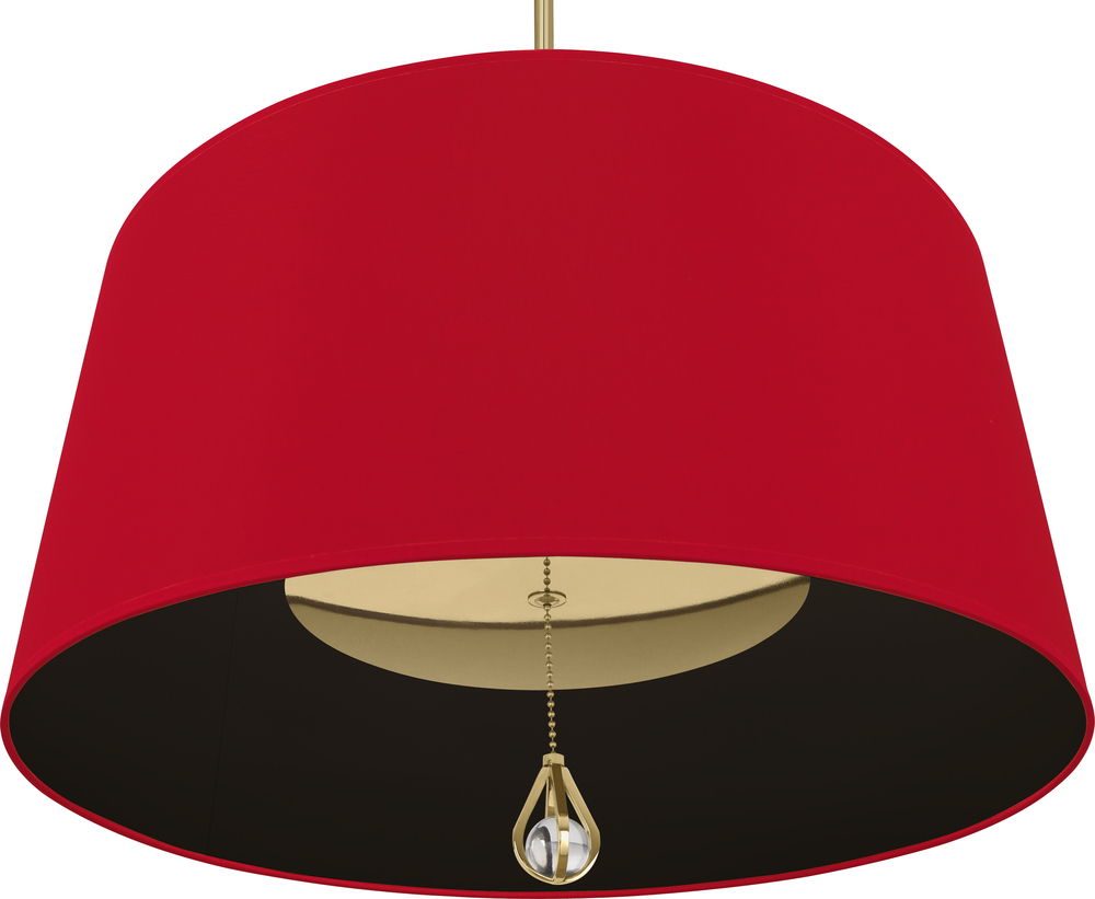 Modern Brass Williamsburg Custis Pendant with Richmond Red Fabric Shade with Blacksmith Black Lining