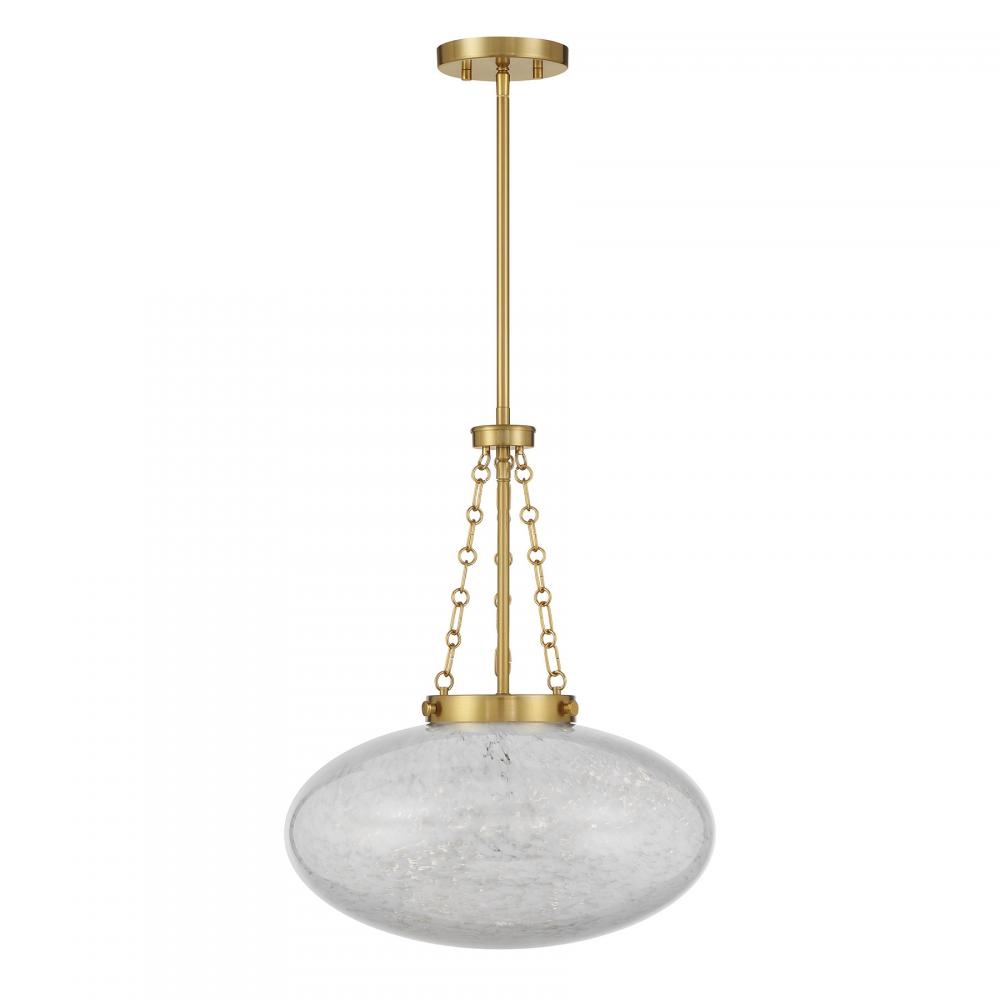 Get a bright and vintage-inspired look with the Savoy House Willow 1-light pendant. It has a mesmerizing, eye-catching oval shade of cloud glass, detailed hanging chain and a Warm Brass finish. Willow is 16.5" in width and has an adjustable height ranging from 20.25" to 74.25". Uses one standard size bulb of up to 60 watts. Bulb not included. Comes with four 12" downrods and one 6" downrod.
