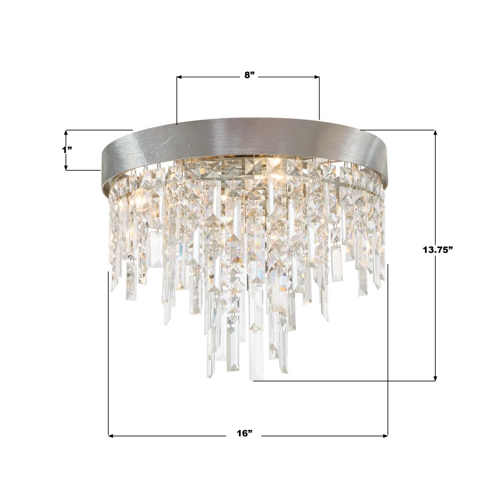 The Winfield collection's artful elegance and inspiring beauty make a sophisticated statement to an interior. This exquisite collection showcases square and rectangular multi-faceted cut crystal strands gracefully hanging from its metal frame. These mesmerizing crystals sparkle and reflect light, creating a dazzling display that captures attention and adds a touch of opulence to any space. Whether illuminated or not, its eye-catching presence becomes a focal point in any room.