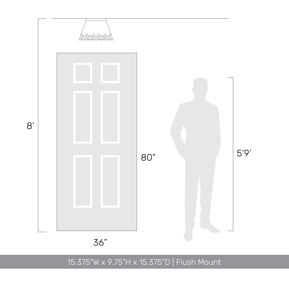 Bring farmhouse elegance into your home with the Wry Lighting Eloise 3-light Flush Mount. Featuring a metal shade and a stunning Antique Ivory frame, it creates a welcoming atmosphere perfect for vintage-inspired settings. This metal shade is enhanced by an Antique Ivory finish that evokes the timeless charm of a treasured European heirloom. The creamy off-white base is artfully aged with a delicate craquelure texture and dark antiquing glaze, bringing out its unique character and history. With a damp location rating, it's suitable for covered and semi-enclosed spaces with occasional moisture, making it perfect for bathrooms and covered porches. Ideal for low ceilings, this flush mount design fits beautifully in hallways, closets, laundry areas, and more, providing ample illumination. Overall dimensions are 15.38"W x 9.75"H x 15.38"D, requiring 3 E26 Medium base bulbs (not included), with a maximum wattage of 60 per bulb. Each light fixture is carefully hand-painted, showcasing artisanal finishes that make every piece unique. Experience the blend of craftsmanship and vintage charm that the Wry Lighting Eloise collection brings to your home.