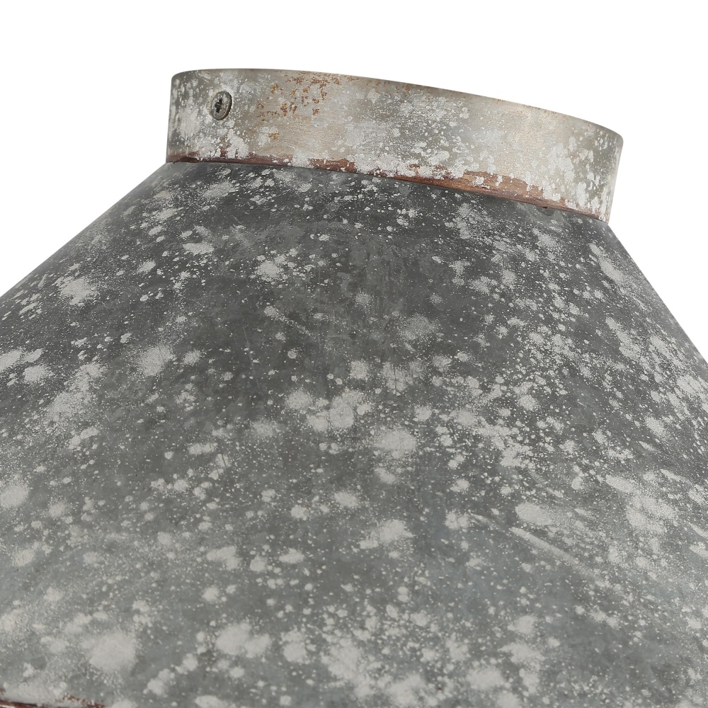 Bring traditional elegance into your home with the Wry Lighting Jasper 2-light Flush Mount in Antique Black Iron. Featuring a metal shade and a bold Antique Black Iron frame, it creates a welcoming atmosphere. The rustic galvanized steel shade is heavily weathered, embodying authentic farmhouse charm while providing warm light with its antiqued golden-orange finish. This deeply textured finish tells a story of time, enhancing your space with its handcrafted character. Ideal for low ceilings in hallways, bathrooms, or laundry areas, it's damp location rated, making it suitable for covered and semi-enclosed spaces. Installation is easy, requiring 2 E26 Medium base bulbs with a maximum wattage of 60 each, and overall dimensions are 14"W x 7.75"H x 14"D. Add a touch of rustic sophistication and quality to your decor with this timeless fixture.