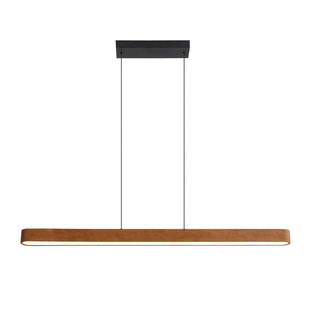Experience the inviting charm of wood with the Wry Lighting Silva Integrated LED Pendant. Designed with a sleek, linear profile, this pendant enhances your space with its contemporary design and rich walnut finish. This fixture comes with no shade, allowing its geometric form to shine while providing effective illumination through integrated LED technology. The walnut finish offers a warm medium-brown hue with a smooth satin luster, effortlessly blending into both modern and classic settings. Damp location rated, it’s suitable for use in entryways, kitchens, and dining areas. The adjustable height ranges from 3.625" to 59.875", making it easy to customize for your space. With overall dimensions of 47.25"W x 2.25"H x 3.13"D, the integrated LED provides powerful illumination at 2100 lumens and 3000K color temperature, ensuring a soothing ambiance. Enjoy worry-free performance without the need for replacement bulbs. Opt for the Wry Lighting Silva to elevate your home's aesthetic with its blend of comfort and style.