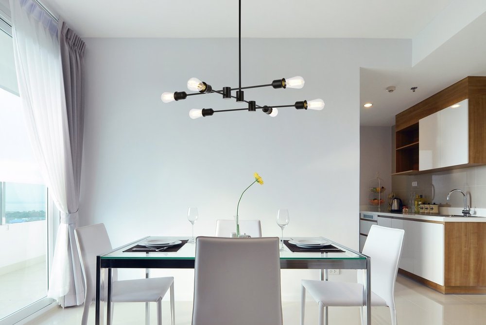 Xavier 6 lights pendant in black is the perfect fixture for over a kitchen island, over a dining table, or use in any room to make a big statement. This pendant elevates the look of any space.