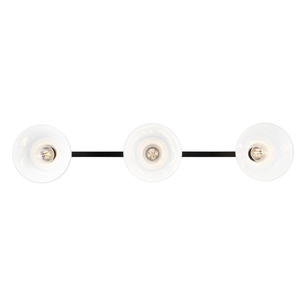 Bring transitional elegance into your home with the Yep by Golden Lighting Carver 3-light Semi-Flush Mount in Matte Black and Vintage Milk Glass. Featuring a vintage milk glass shade and a matte black frame, it creates a welcoming atmosphere. The vintage milk glass shade is polished to a high-gloss sheen, providing a soft, luminous glow that adds nostalgic charm to any room. Its dense, opaque milky white color creates a glare-free light, perfect for achieving a warm and inviting ambiance. The matte black finish is both timeless and versatile, offering sophistication that pairs well with various decor styles. This fixture is damp location rated, making it suitable for covered and semi-enclosed spaces such as entryways, kitchens, and bedrooms. The adjustable hanging height allows for customizable installation tailored to your specific ceiling height. Overall dimensions are 35.5"W x 11.13"H x 7.63"D, and it requires 3 E26 Medium base bulbs (not included) with a maximum wattage of 60 per bulb. Enhance your home ambiance with this stylish fixture that marries form and function, delivering abundant light while maintaining valuable headspace.
