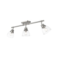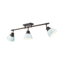 Bring contemporary elegance into your home with the Yep by Golden Lighting Duncan 3-light Semi-Flush Mount. Featuring a metal shade and a stylish Pewter frame, it creates a striking atmosphere. The Glossy Black metal shade boasts a deep, reflective surface that enhances light, creating a high-impact focal point. The Pewter finish adds a medium-grey tone with subtle warmth, perfect for a variety of decor styles, from industrial to classic. This fixture is damp location rated, making it ideal for covered areas like porches and bathrooms. Adjustable directional heads allow you to customize the lighting to spotlight specific areas. Its dimensions measure 35.38"W x 10.75"H x 6.5"D, and it requires three E26 Medium base bulbs (not included) with a maximum wattage of 100 per bulb. The Duncan fixture combines functionality and modern design, making it a stylish addition to your home.