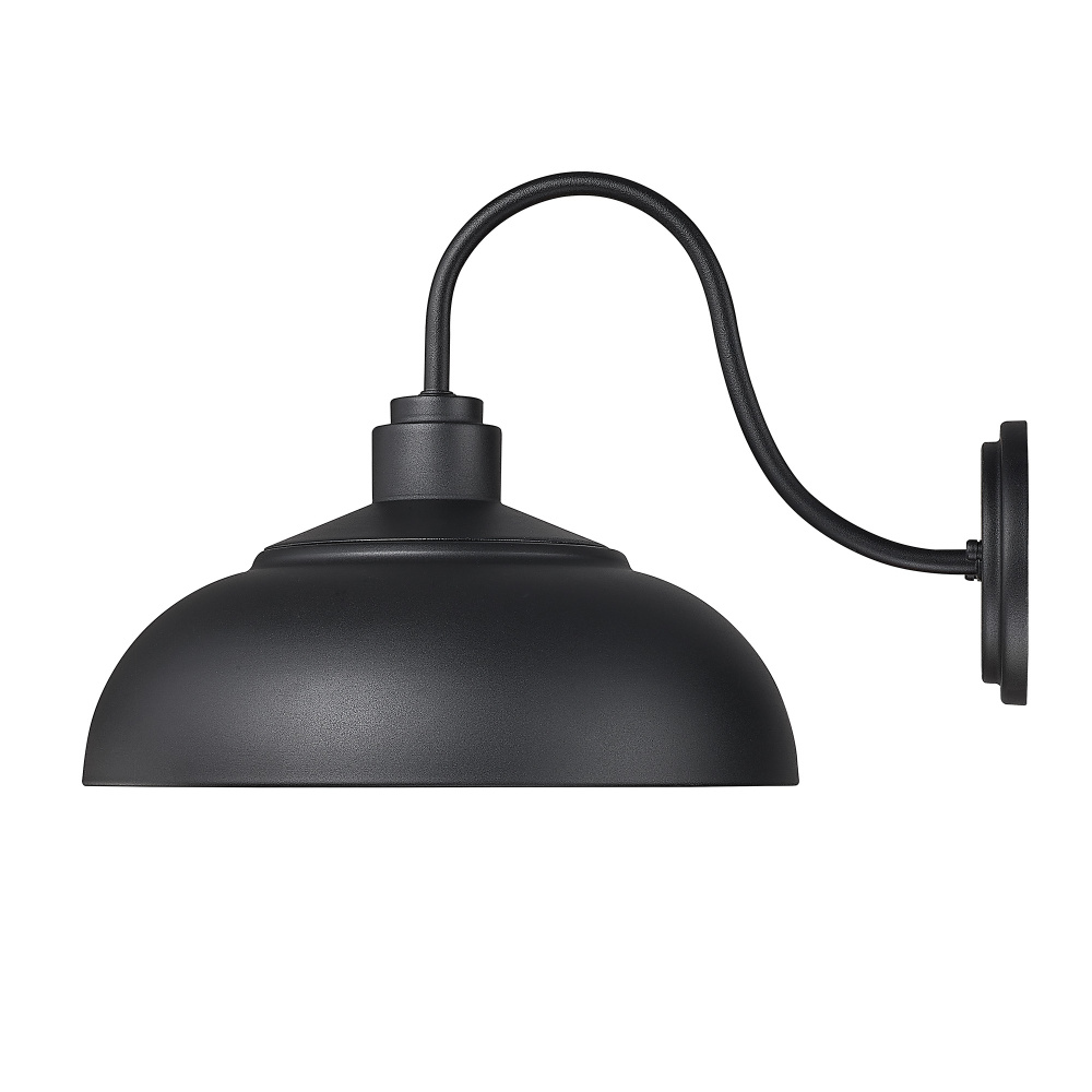 Bring farmhouse elegance into your home with the Yep by Golden Lighting Levitt 1-light Outdoor Wall. Featuring a metal shade and a Natural Black frame, it creates a welcoming atmosphere. The metal shade comes in a Natural Black finish, featuring a flat matte sheen and a slightly granular texture, providing a warm and rustic light effect suitable for various outdoor settings. The Natural Black finish offers a softer, more organic take on a classic, reminiscent of raw, natural iron, making it versatile for modern farmhouse, industrial, and transitional designs. Functional and inviting at entryways, patios, and garage doors, this fixture is Wet Location Rated, designed to withstand direct exposure to rain and snow. It requires 1 E26 Medium base bulb (not included), with a maximum wattage of 100. Overall dimensions are 13.63"W x 11.63"H x 17.88"D. Complete your outdoor spaces with timeless charm and quality that endure the elements.