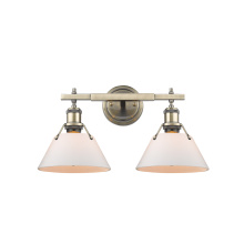 Bring industrial elegance into your home with the Yep by Golden Lighting Orwell 2-light Vanity in Brushed Champagne Brass and Clear Glass. Featuring a glass shade, it creates a welcoming atmosphere. The clear glass shade offers brilliant, unobstructed light while beautifully showcasing the bulb and fixture's design. The finish, depicting understated sophistication, blends warmth with softness, adding a touch of quiet luxury to your interiors. Ideal for bathrooms, this vanity light is damp location rated, fitting seamlessly in covered or semi-enclosed spaces. Requires no complex installation and features dimensions of 18.25"W x 9.88"H x 8.5"D. It requires 2 E26 Medium base bulbs (not included), with a maximum wattage of 100 per bulb. Elevate your space with quality and style, perfect for practical illumination and aesthetic appeal.