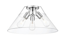 Bring industrial elegance into your home with the Yep by Golden Lighting Orwell 3-light Flush Mount. Featuring a metal shade and an Aged Brass frame, it creates a welcoming atmosphere. The metal shade offers a sleek finish, reflecting a warm, inviting glow, while the classic Chrome details add a bold touch of sophistication. Embrace timeless elegance with a finish that showcases a dynamic surface texture, perfect for adding character to traditional or industrial-inspired spaces.Ideal for low ceilings in hallways, closets, laundry areas, and bathrooms, this fixture is Damp Location Rated, making it suitable for areas with occasional moisture. Requires 3 E26 Medium base bulbs (not included), with a maximum wattage of 60 per bulb. Overall dimensions: 18.75"W x 9.25"H x 18.75"D, it enhances any space with its compact design and wide illumination. Experience the perfect blend of style and function with this stunning piece.